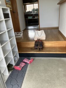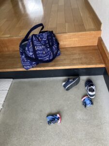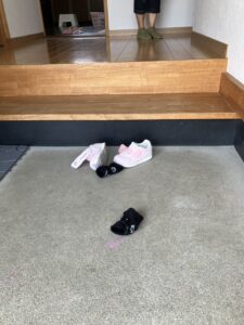 早く遊びたくて玄関に靴やカバンを放り出して入って行く姿が愛おしくて、先日思わず写真を撮りました📸